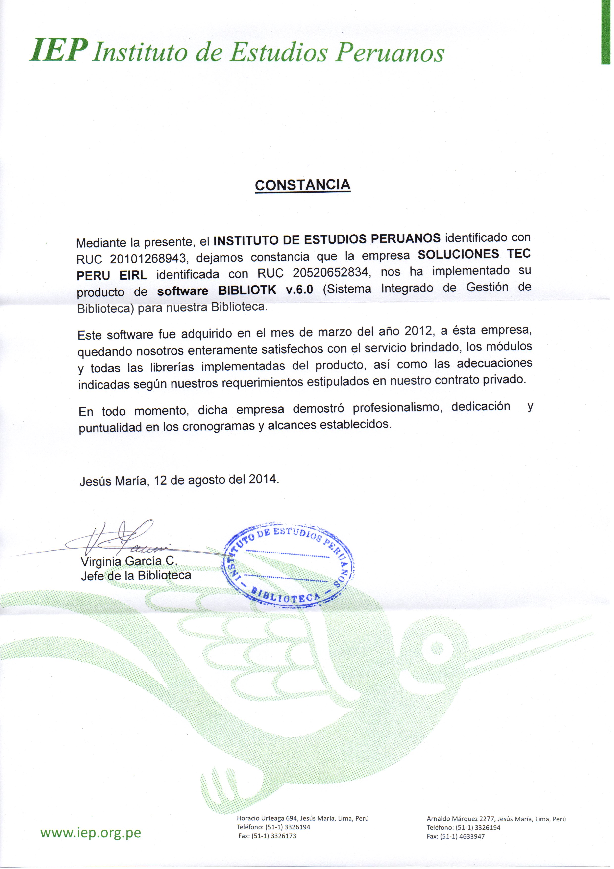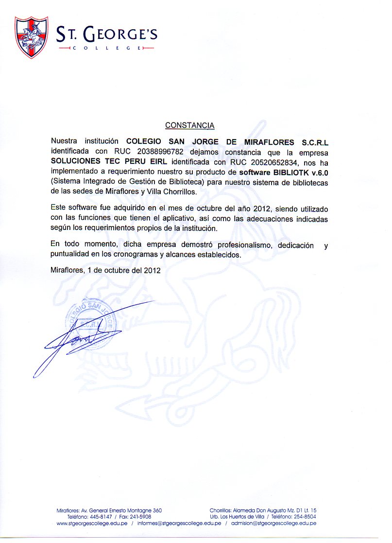 Productos de Software BIBLIOTK (c) 2016, registrado en INDECOPI, Oficina de derechos de autor.